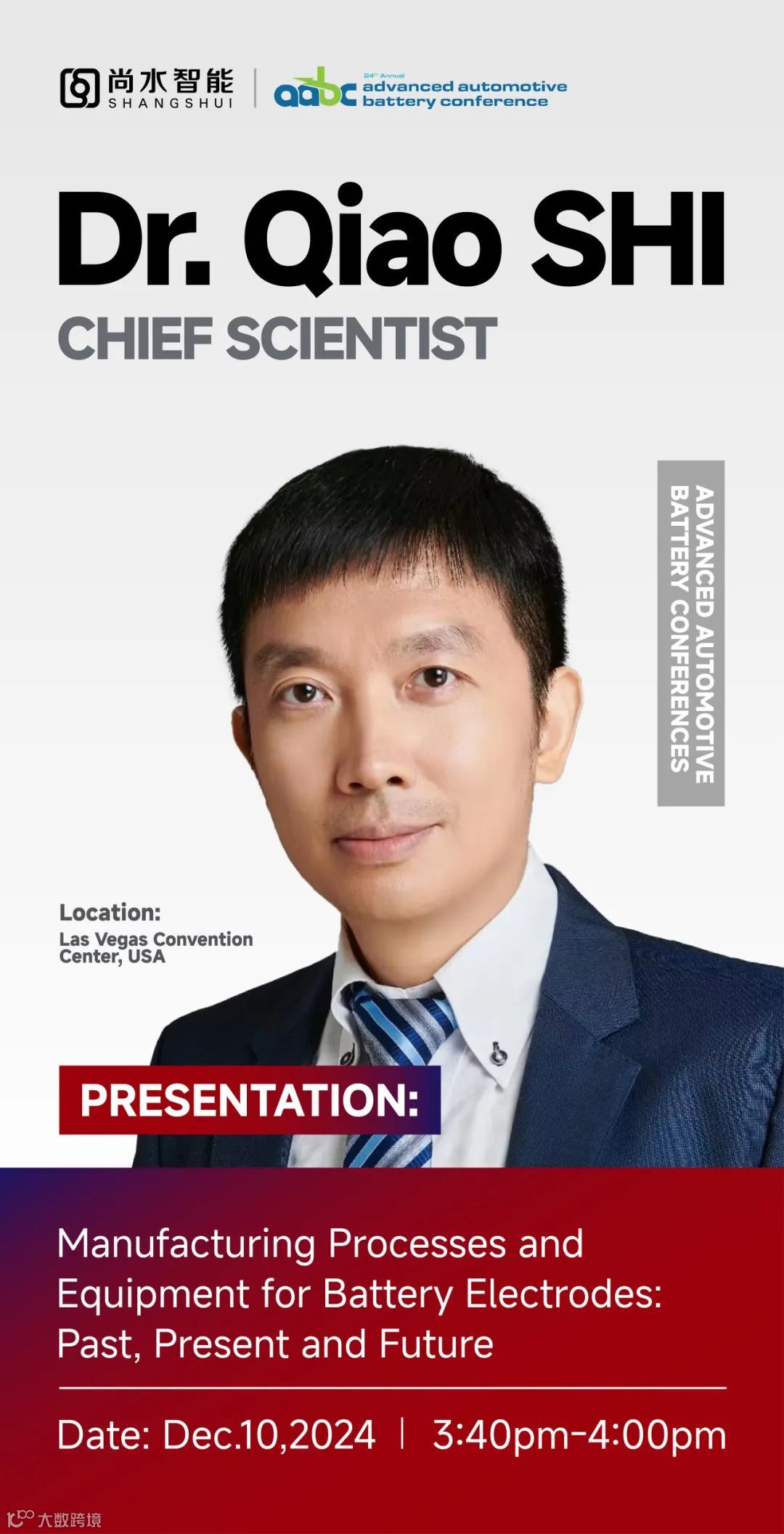 During the event, Shangshui [ Booth : 109 ] will showcase a varity of innovative technologies and products, Shangshui Chief Scientist Dr. Qiao SHl is scheduled to deliver a keynote speech titled "Manufacturing Processes and Equipment for Battery Electrodes: Past, Present and Future" on the afternoon of December 10th.
