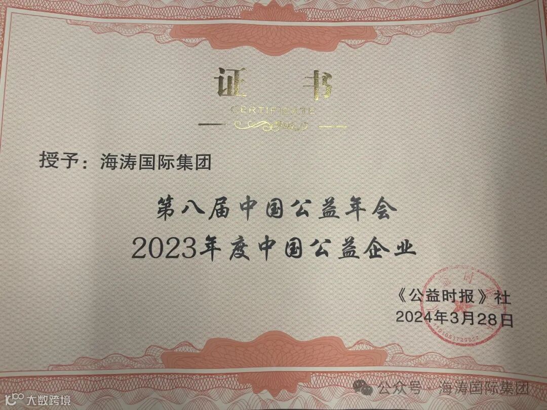 其中,福寿园国际集团、海涛国际集团荣获2023年度中国公益企业
