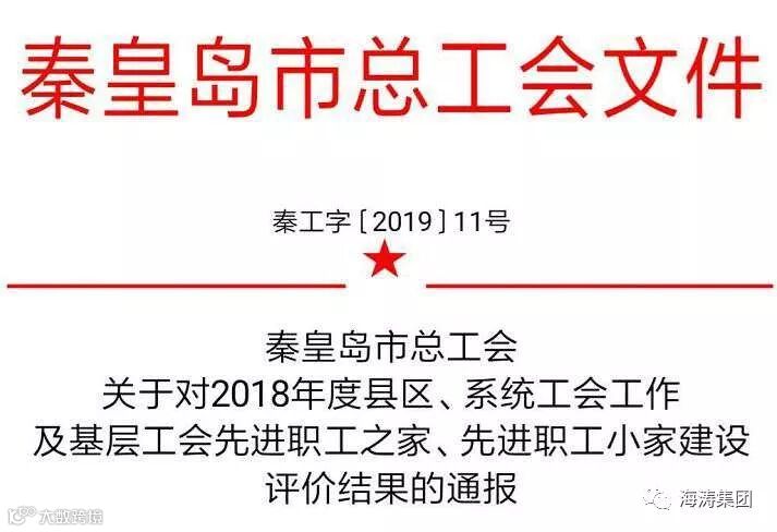 导读:2019年3月18日,秦皇岛海涛集团被评为“市级先进职工之家”称号。