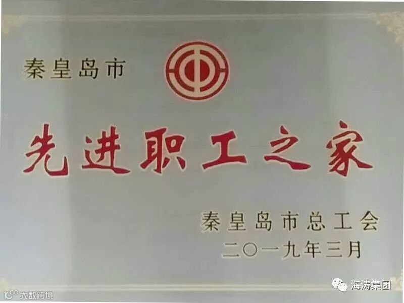 海涛集团被评为“市级先进职工之家”称号,秦皇岛市工会为海涛集团颁发“先进职工之家”牌匾。