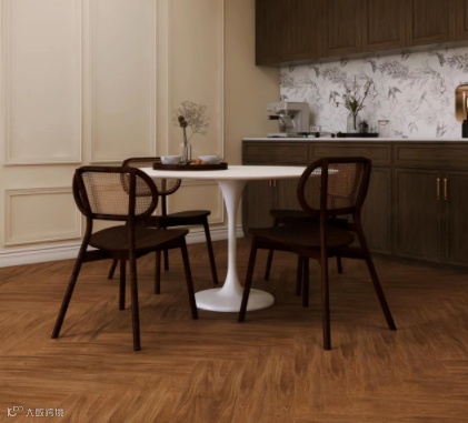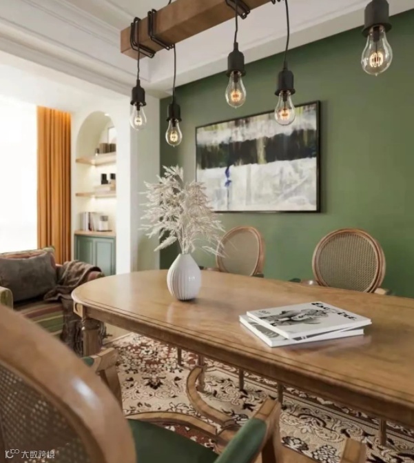 ●硬装材质则选择:护墙板、仿古砖、小花砖等。