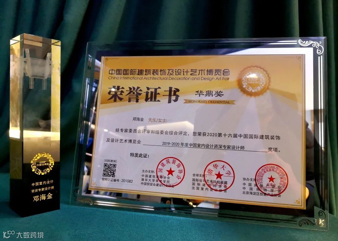 最终评选入围了第十六届中国国际建筑装饰设计艺术博览会【华鼎奖】,荣获了“2019-2020年度中国室内设计资深专家设计师”称号