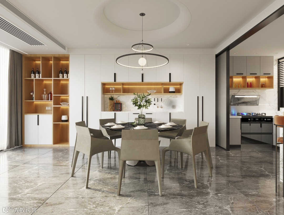 客厅面积宽阔,是一家人聚集的区域。大面积的自由空间,无论是亲子活动或是会客都很适宜。
