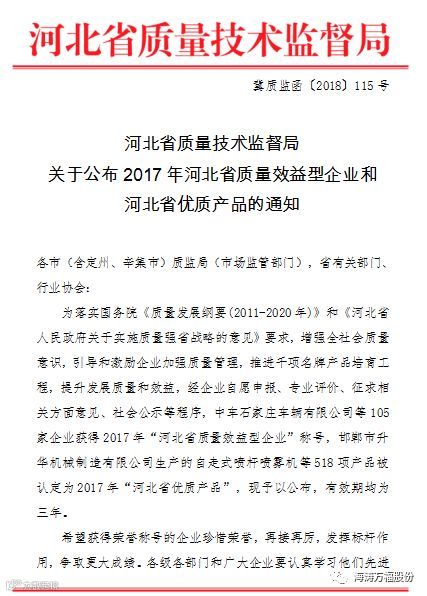 喜讯!海涛股份公司产品被评为河北省优质