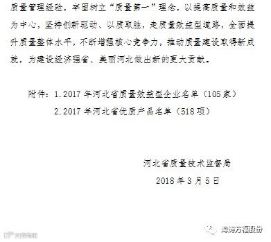 导读:喜讯!海涛股份公司产品被评为河北省优质商标