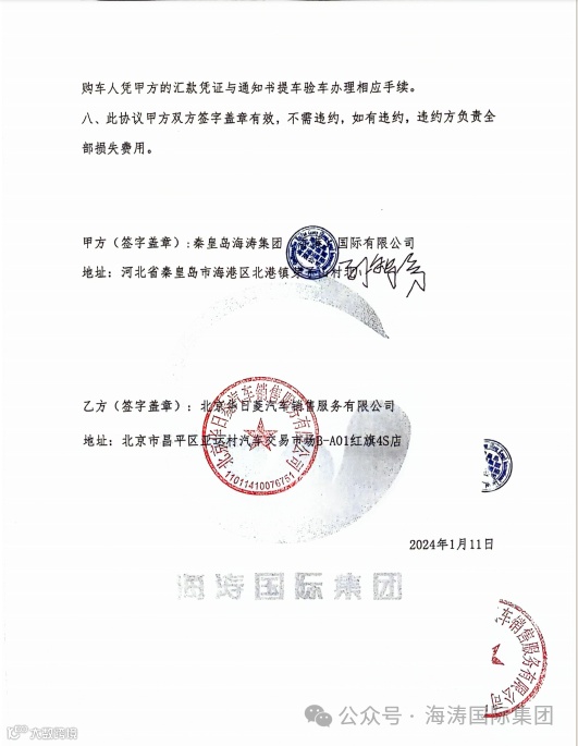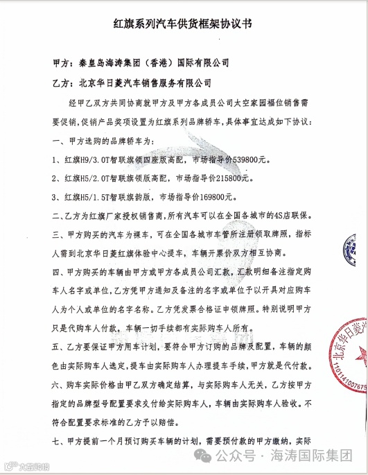 海涛国际集团与北京红旗4S店达成合作