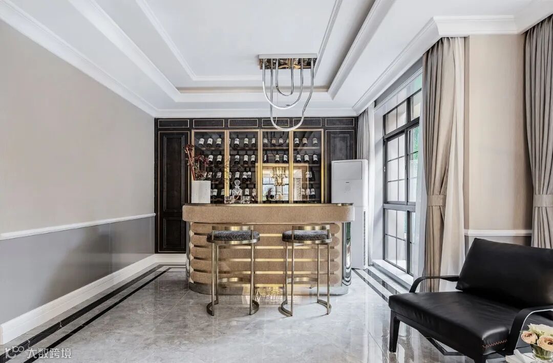 本案为四层总面积为403m²的别墅,目标客群为典型的三世同堂家庭群体。KOOMARK 库玛设计别出心裁,提供了一种经过淬炼的精致来满足人们对于奢华空间环境那种感性、本能的需求,同时也为这个家族保留了舒适而轻松的空间体验。