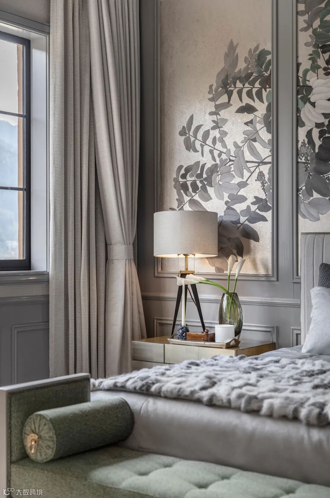 主卧里,所有辅以灰绿色的调色板和花卉墙纸,仿佛长在树木上的新芽,生气勃勃。