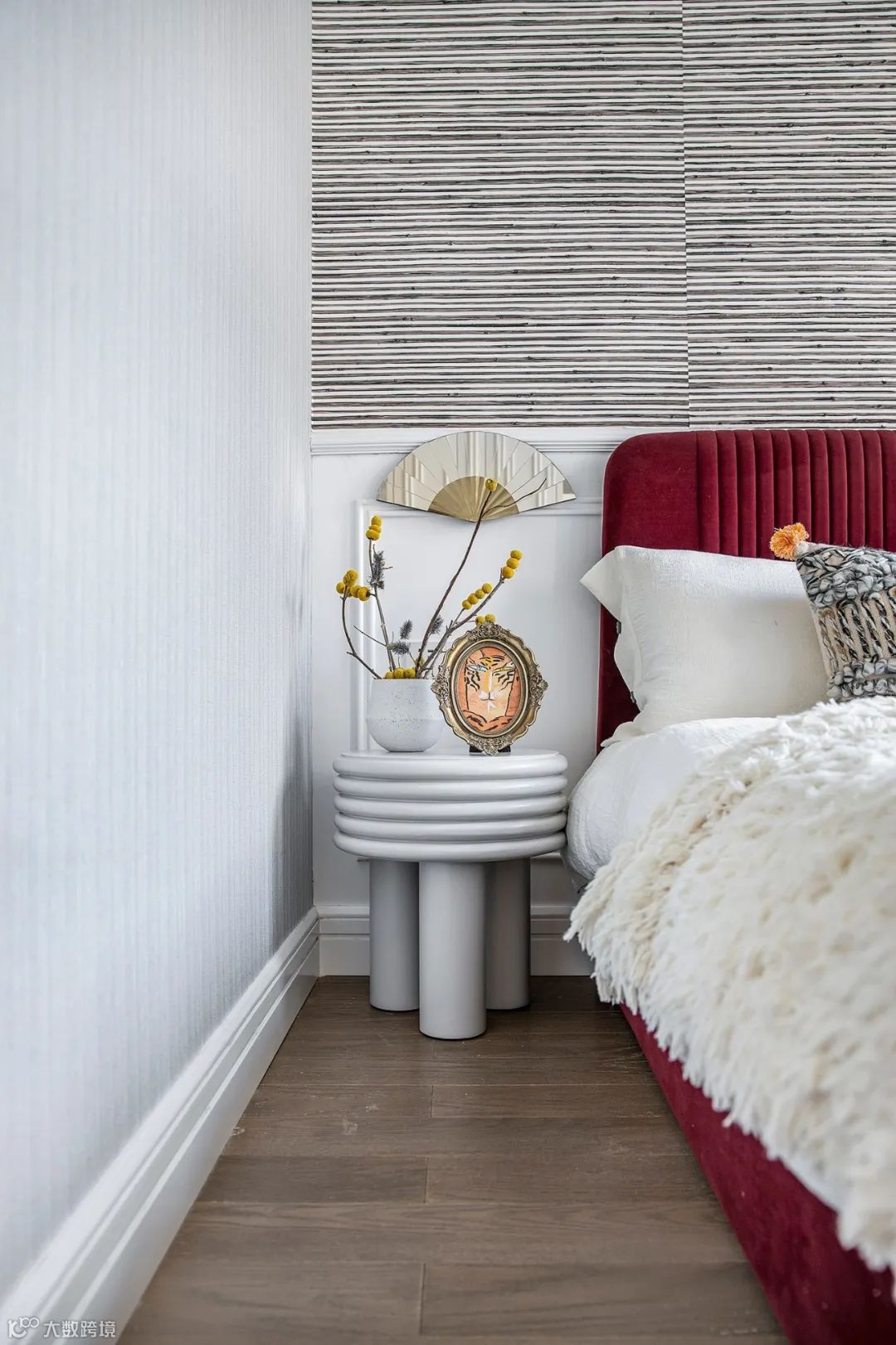 以艺术感作为出发点,女儿房掌握了法式风格精巧设计的精髓,黑白简约的经典色调和那抹丝绒酒红的巧思运用,让房间充满着趣味性。