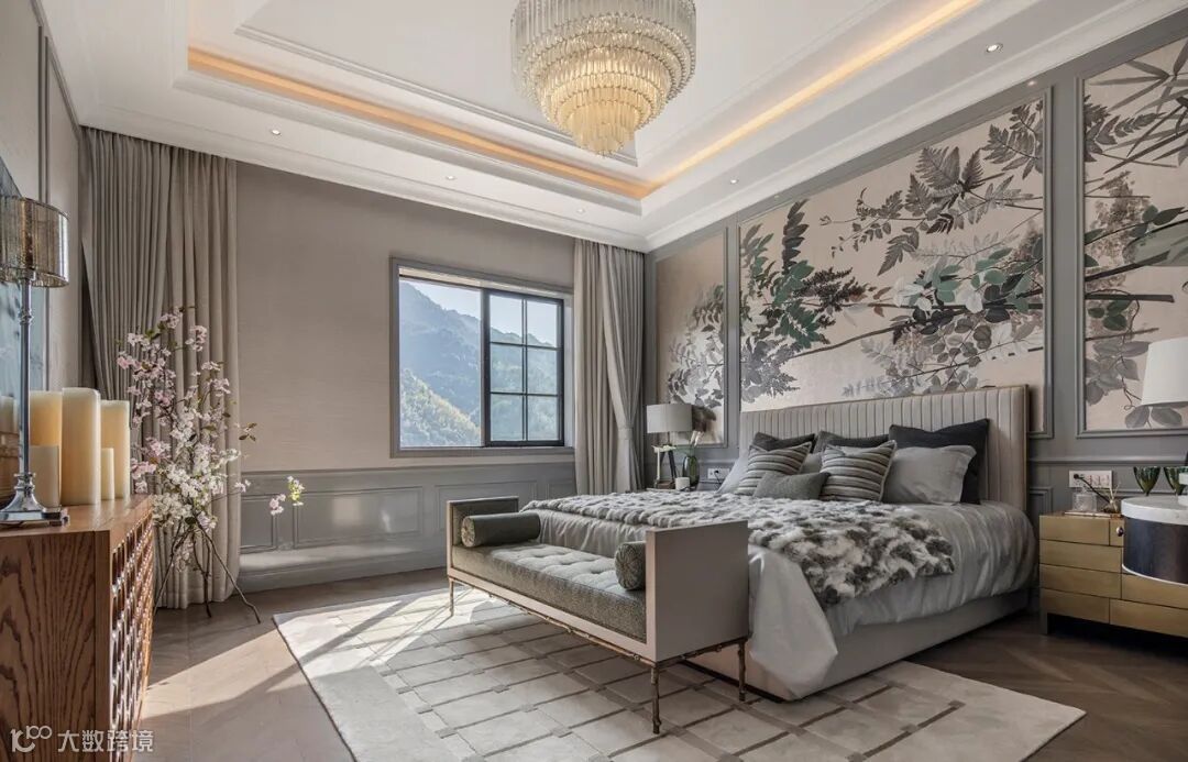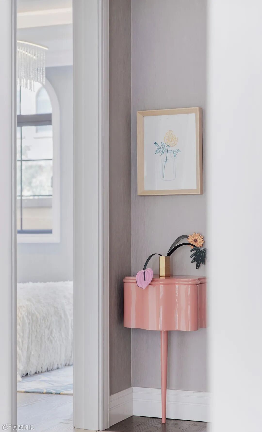 揉合采光的纱帘营造空间氛围,让寝居蒙上一层甜梦般的朦胧美。