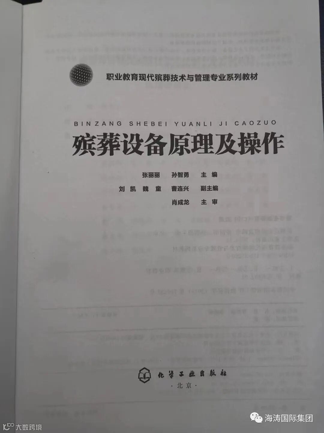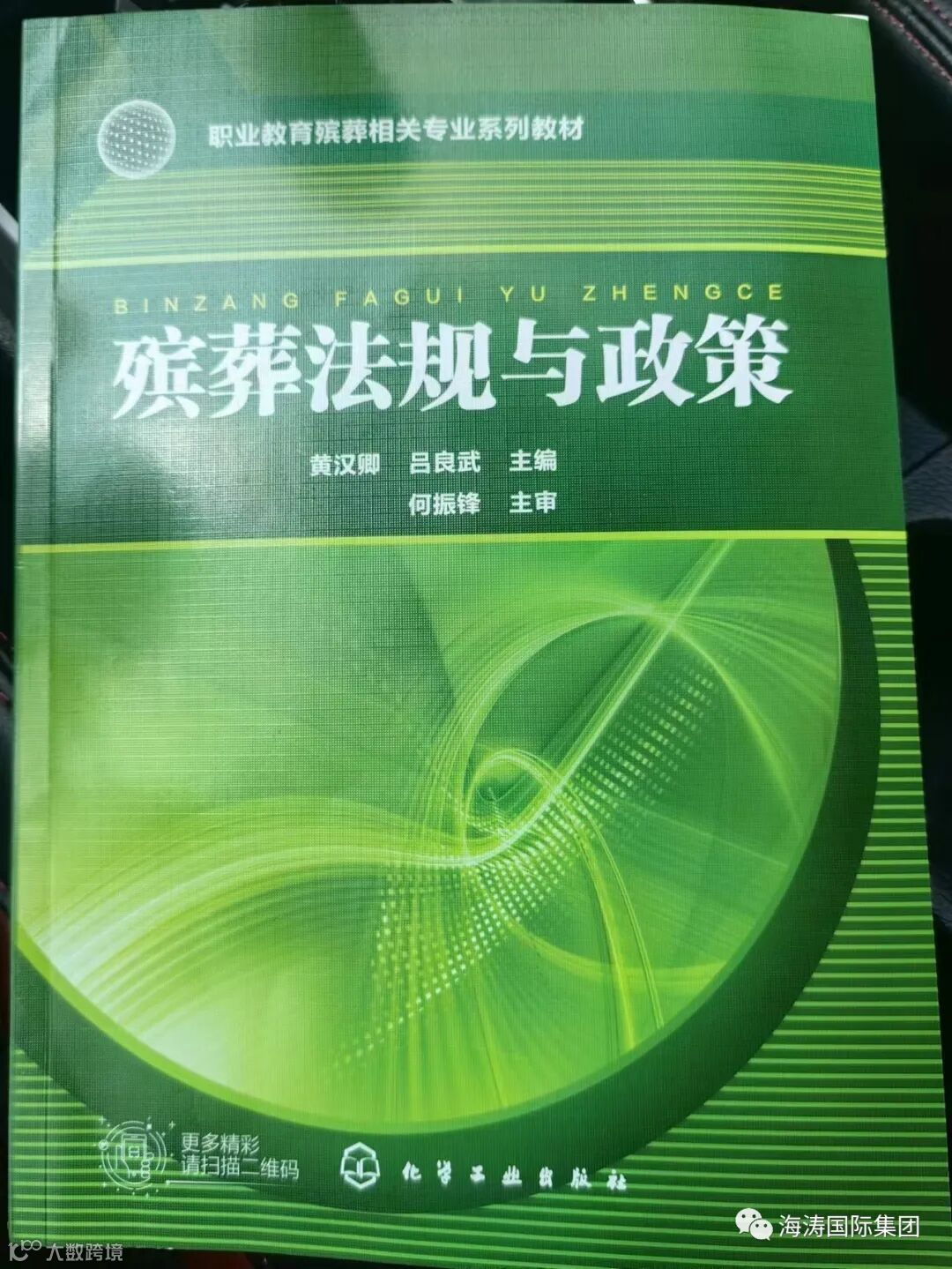 海涛国际集团作为主编与编写单位之一,继出版发行《殡葬设备原理与实操》教材后,《殡葬政策法规》教材也正式由化工出版社出版发行。