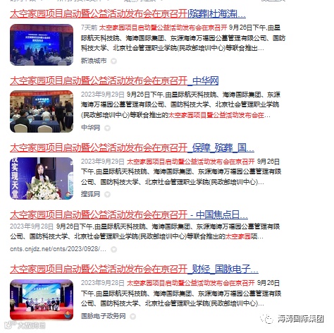 | 太空家园项目启动暨公益活动发布会在京召开 | 燕赵晚报(石家庄新闻网 | http://yzwb.sjzdaily.com.cn/zixun/2023/10/07/99855372.html |