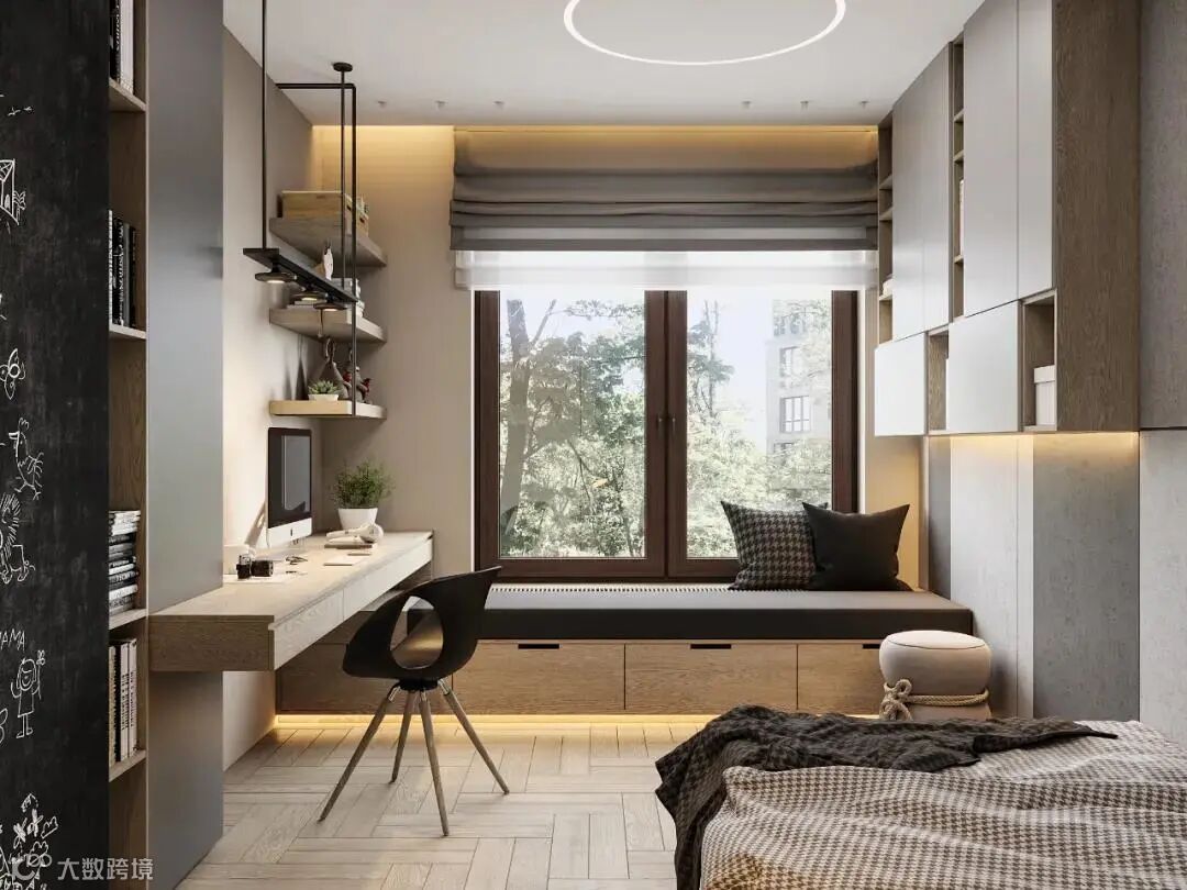 还能将飘窗、床、床头柜、衣柜等家具组合在一起