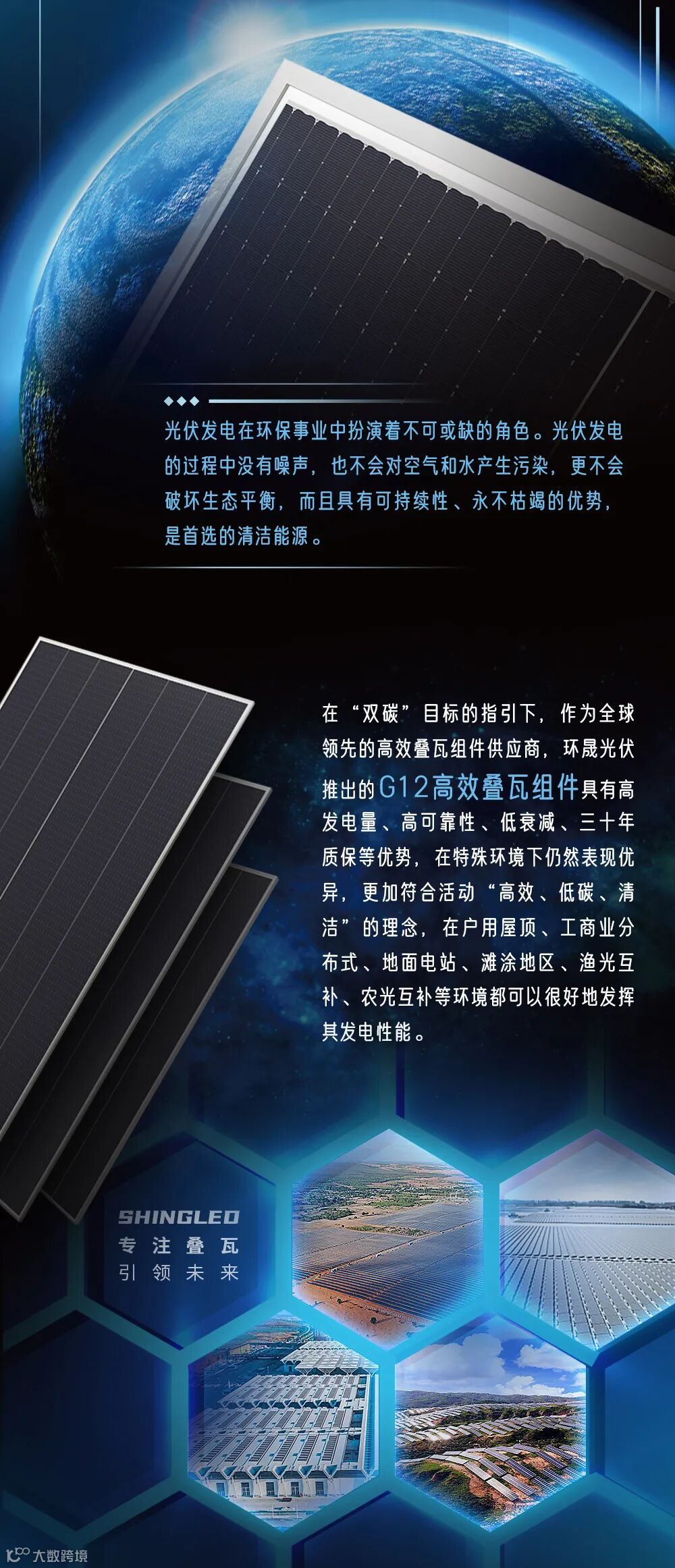环晟光伏(江苏)有限公司于2015年成立,为TCL中环全资控股子公司,秉承“环境友好、员工爱戴、社会尊重、客户信赖”的企业愿景,是一家集自主研发、生产、销售及服务为一体的高效叠瓦电池组件供应商。