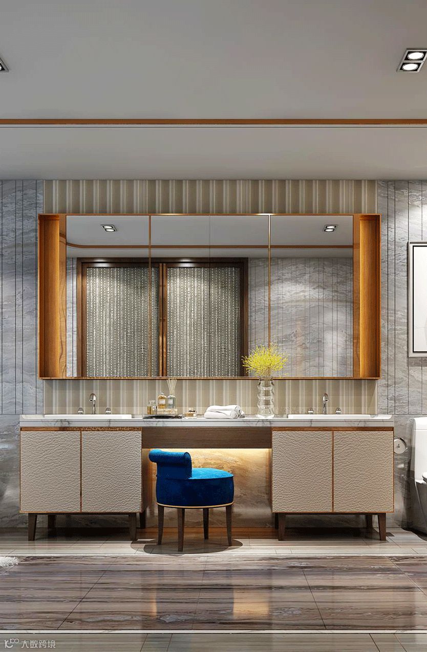 双台盆设计可以提高生活效率,两个人一起洗漱的画面也很温馨。当然,双台盆一般适合于卫生间空间比较大的情况。