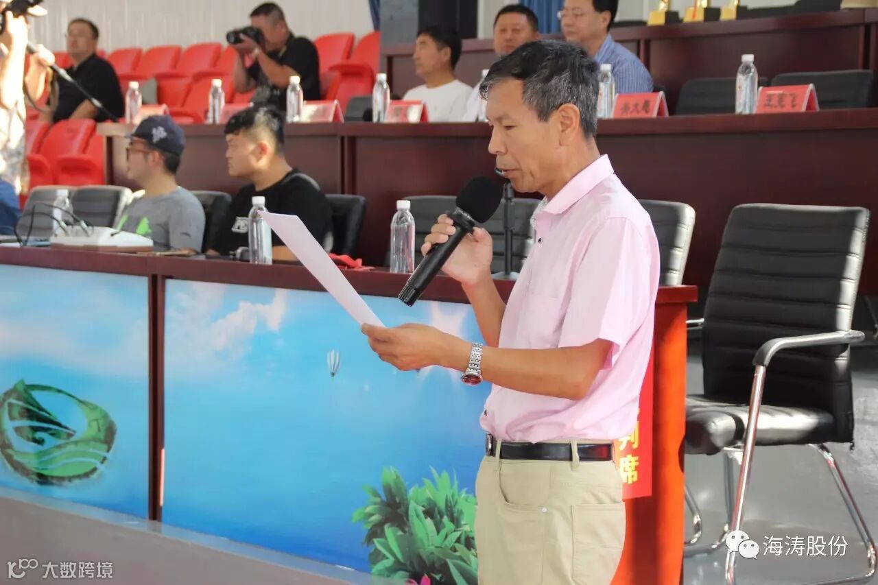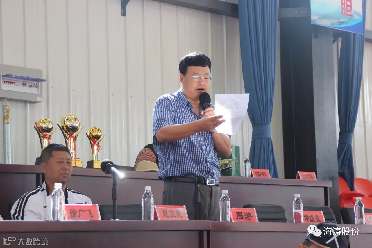 图为:秦皇岛海涛股份公司董事长孙智勇致欢迎辞
