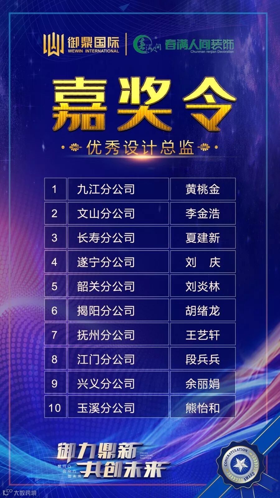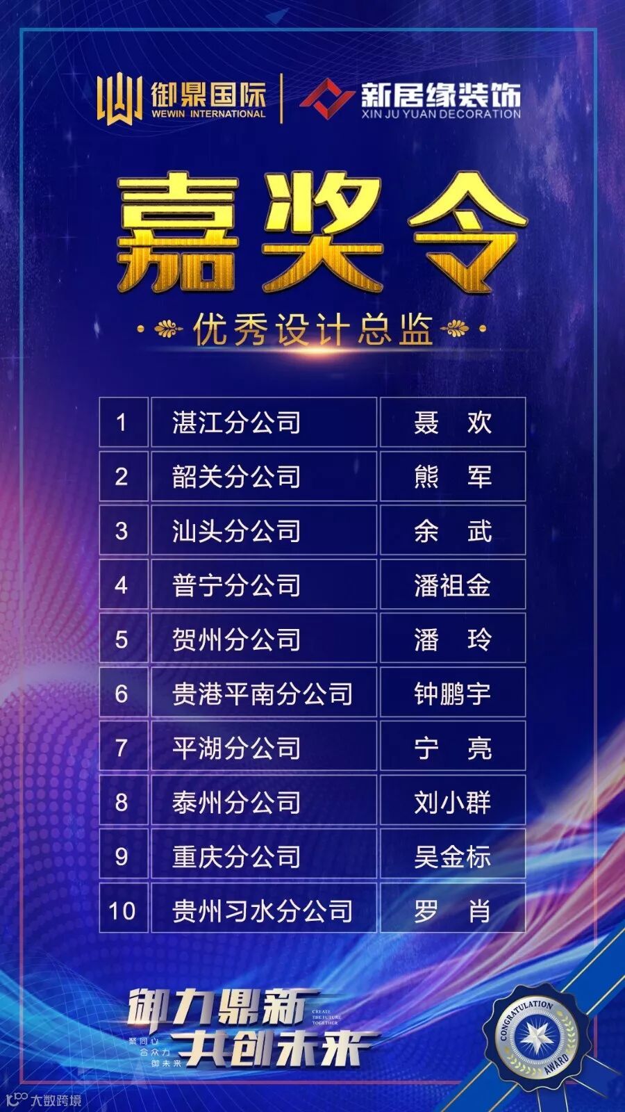 为实现集团更好的管理运营,御鼎集团授牌予高级导师朱建民、聂旭德为集团片区执行官COO,更好地帮助全国线下装企培训活动执行落地。