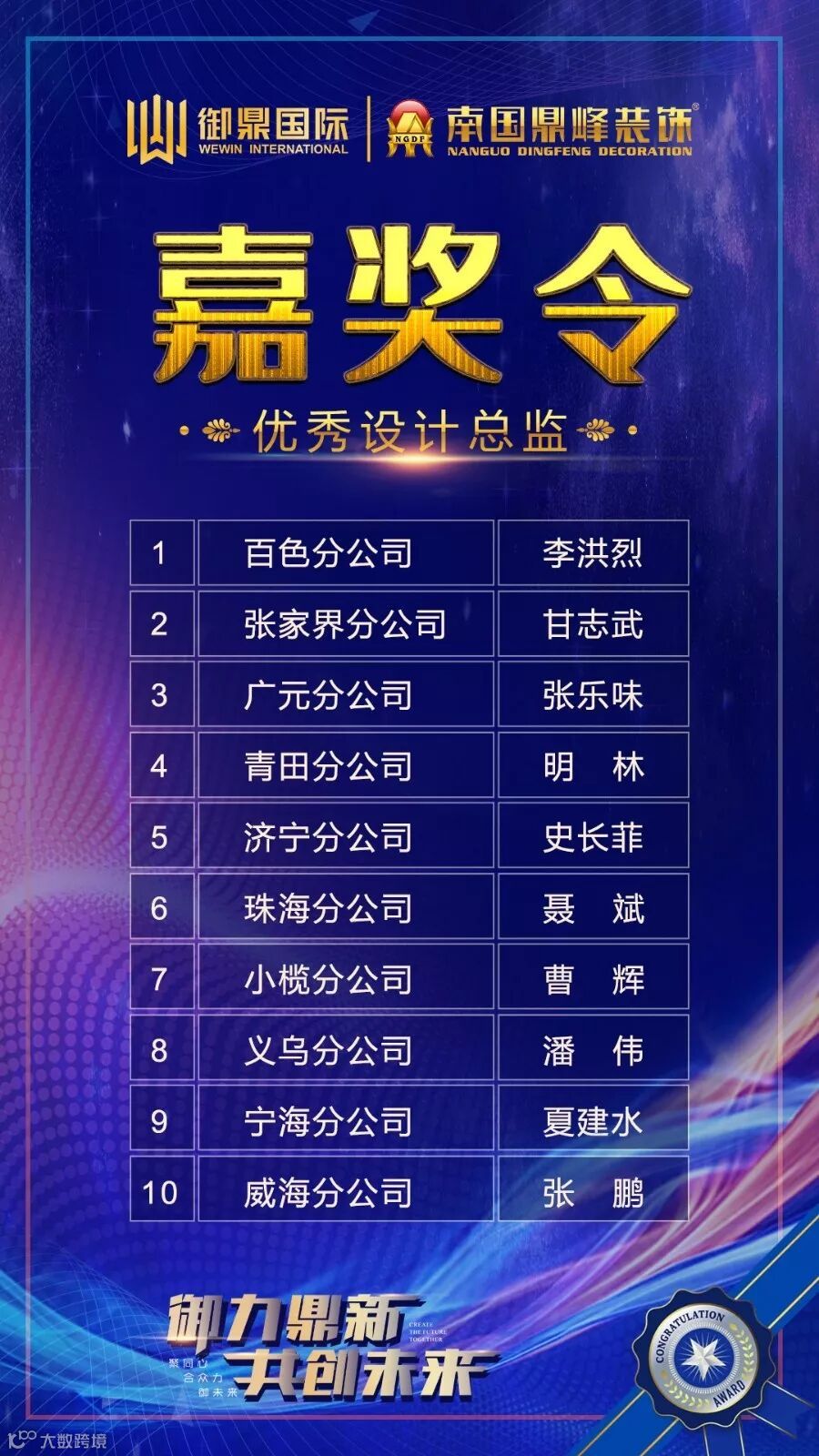 御鼎国际 嘉奖令