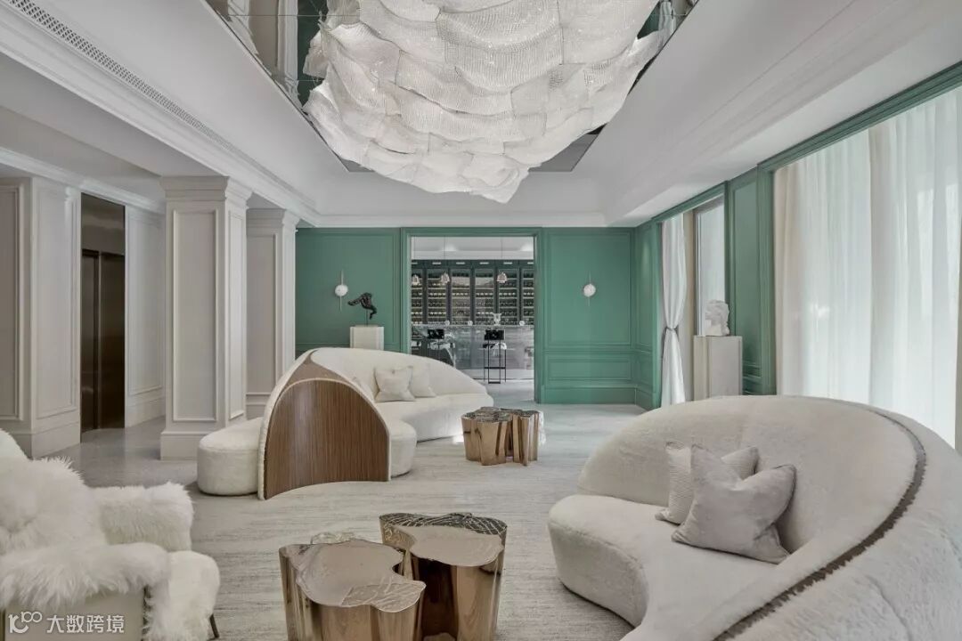 整座建筑装修设计融入了法式毕宏宅邸的设计精髓,以室内廊道为中轴对称,衔接整个庄园,采用了经典法式园林的空间布局形态,讲究空间的对称性、序列性和放射性。