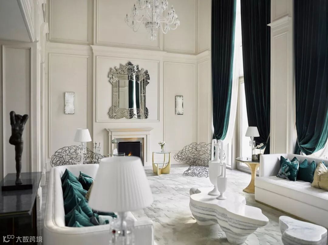 价值传承历久弥新,对艺术态度、对家族沉淀尤其如是,以不同明度的祖母绿、米色、灰色的组合作为各层空间主色配置,打造不为时代所易的经典色系,细节处订制专属身份徽章。
