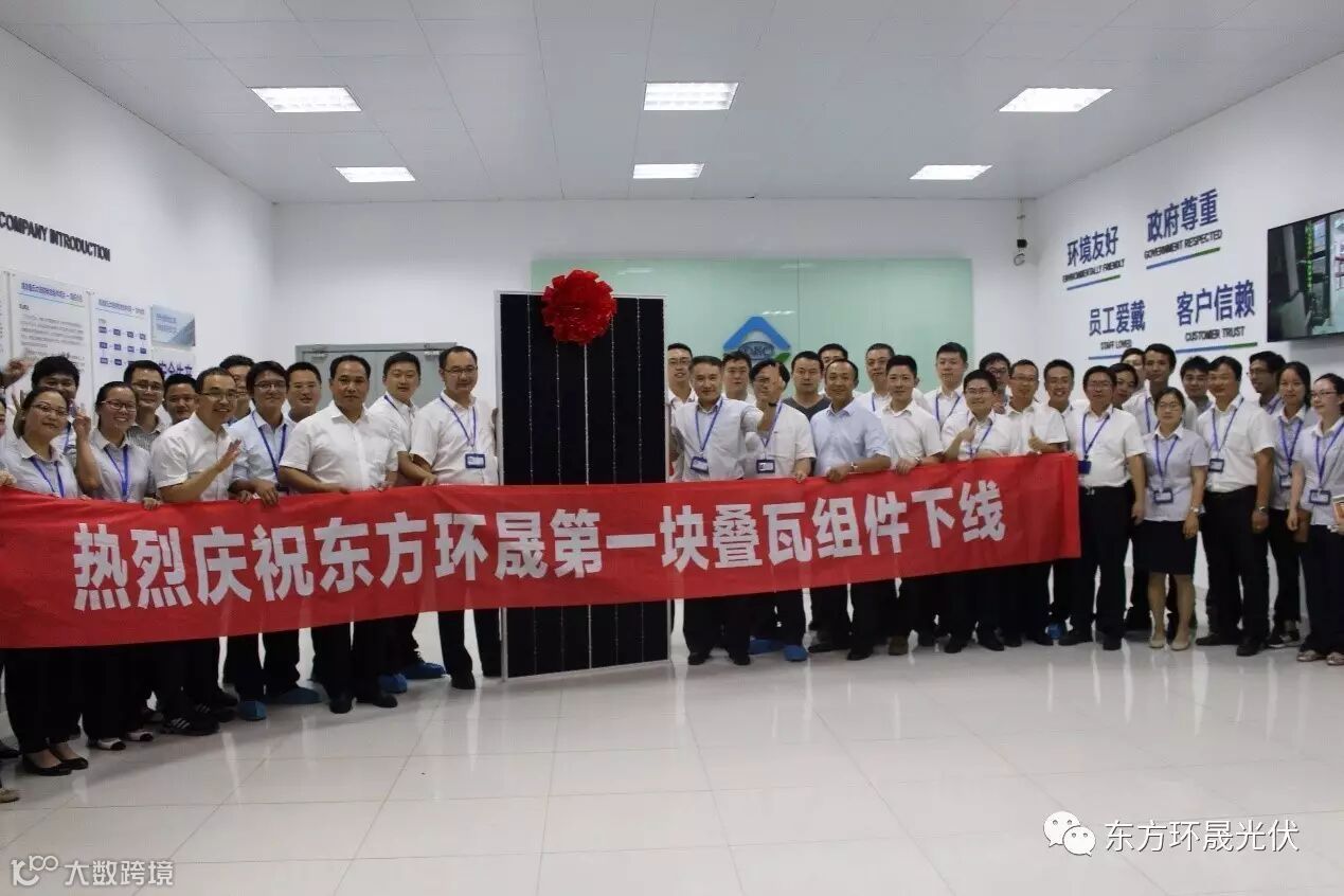 2017年7月20日19点18分,在翘首以盼中,在公司各级人员的期待下,东方环晟自主生产的第一块高效叠瓦组件正式下线。