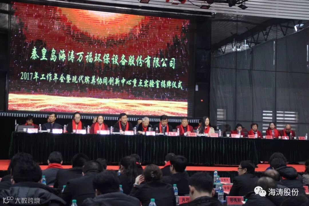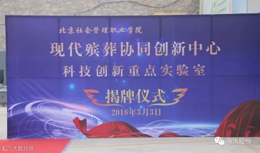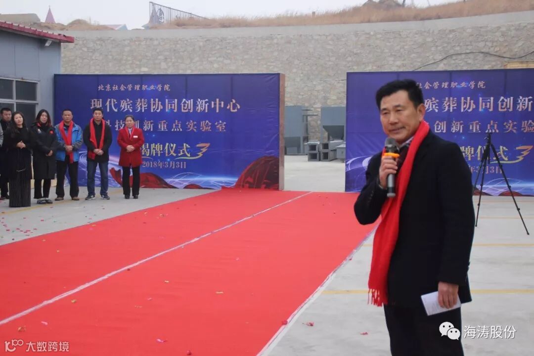 2018年3月3日下午1点30分,在秦皇岛海涛股份公司科技楼前举行“现代殡葬协同创新中心重点实验室揭牌仪式”。参加此次揭牌仪式,就座于主席台的领导有: