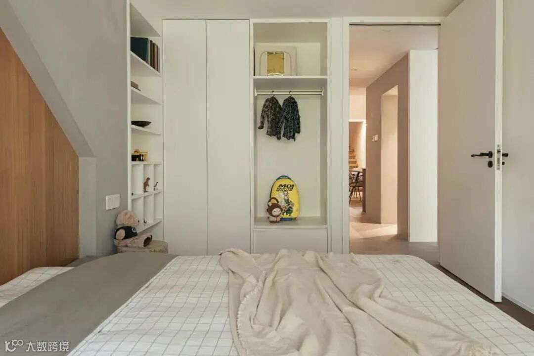 规划流畅的双重动线,满足空间灵动性和整体性。行走其中,运用门片的多种形式,以移门、折门、格栅柔和过渡空间,呈现富有层次变幻的框景,贯通衍生窗外绿意和自然光线,共同调和梳理屋内精神的秩序,空间的仪式感由此而生。
