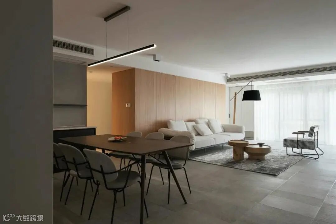 空间可以给人以安定的情绪,整体空间调性以黑白灰的永恒色为基调,拼接大面积温润的木色质感,渲染轻松、静雅的氛围,达到镇定心神的空间效应,让人在归家的片刻,便能卸下紧绷的神经,感受被生活温柔相待。