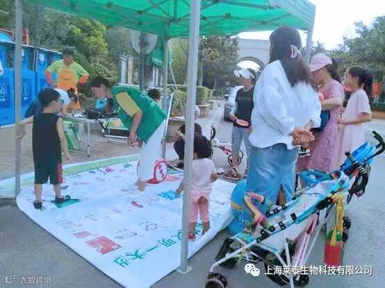 “再抛一次,加油加油......来来来”,走六步,一、二、三、四、五......孩子们玩得可开心了,吸引了很多家长和孩子们。7月9日上午,上海莱泰工作人员走进阿卡迪亚小区以“抛个骰子拉拉手,垃圾分类棋步走”的主题活动。