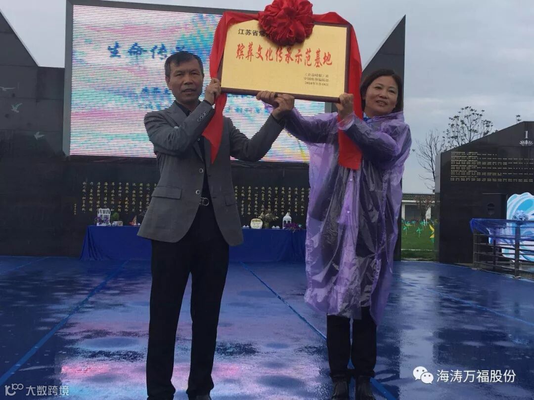 二、“生命传承、大爱永恒”殡葬文化传承基地授牌仪式,《公益时报》社中国殡葬业专家委员会常务副主任、海涛股份公司董事长孙智勇为常州市殡仪馆授牌,被评为“全国殡葬文化传承示范基地”。