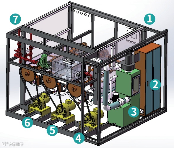 ①入料口②电气控制箱③生物洗涤式除臭装置④1号搅拌轴⑤2号搅拌轴⑥3号搅拌轴⑦循环加热系统