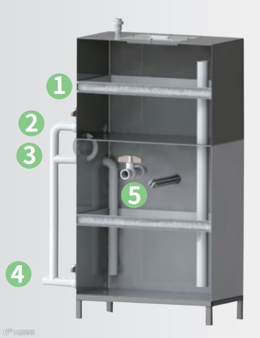 污水泵将污水泵入“进水口”,减慢污水的流动速度,增加油水的上升时间,多余的水从“溢流口”流走,废气油脂被隔离在箱体里,待油层达到一定的厚度,就可实现油水的明显分离。