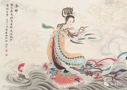 宓妃是东方木德之帝伏羲的女儿,渡洛水覆舟淹死,成了洛神。她美得异乎寻常:“翩若惊鸿,婉若游龙,荣曜秋菊,华茂春松。仿佛兮若轻云之蔽日,飘摇兮若流风之回雪。远而望之,皎若太阳升朝霞;追而察之,灼若芙蓉出渌波。”(三国魏.曹植《洛神赋》)她与黄河之神河伯门当户对,顺理成章地结为夫妇。