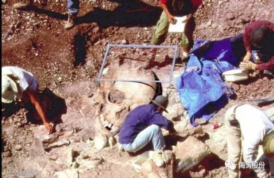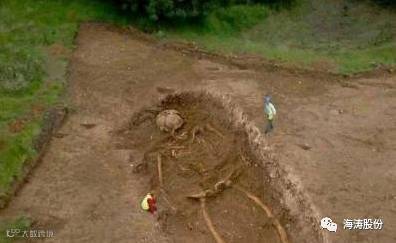 美国某博物馆收藏的巨人腿骨化石,据此推测巨人的身高5米。这幅图片与第七幅图片是同一考古现场拍摄的。据说考古是在地点浙江省某地。