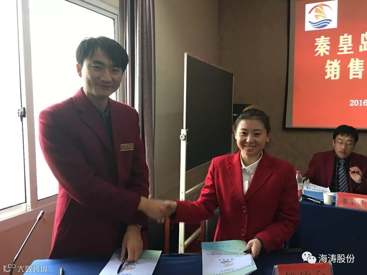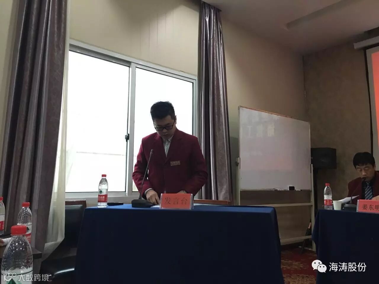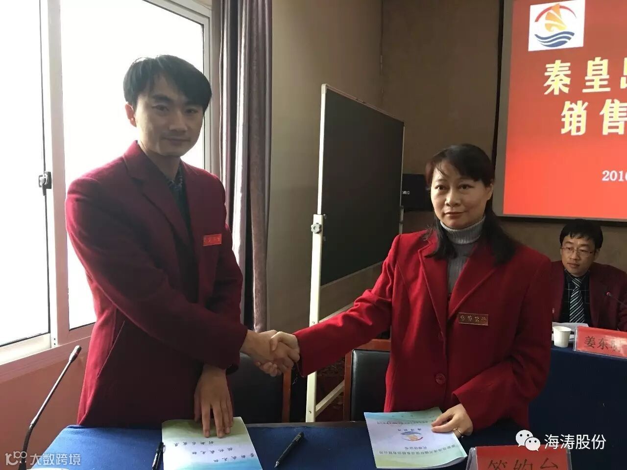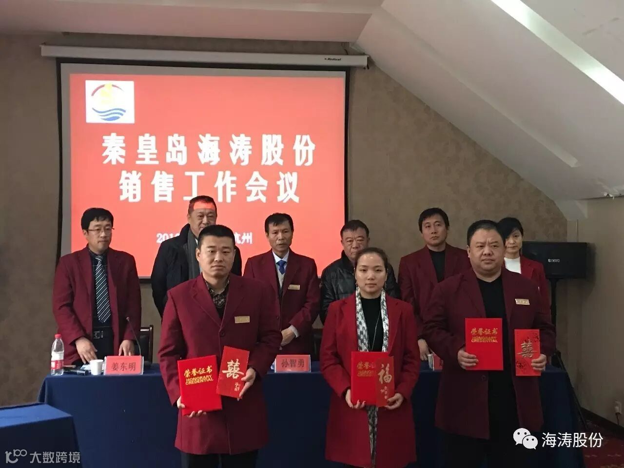 2016年12月25日,秦皇岛海涛股份销售工作会议在杭州市萧山区召开.孙智勇董事长、董事张阳、党支部书记马春海、副总经理孙海波、副总经理姜东明、副总经理赵日东、销售部经理杨阳、销售部副经理冯博、国际业务部经理冯治帼、市场运营部经理李曼、销售部业务员韩燕燕等,及各分公司代表等出席了本次会议.