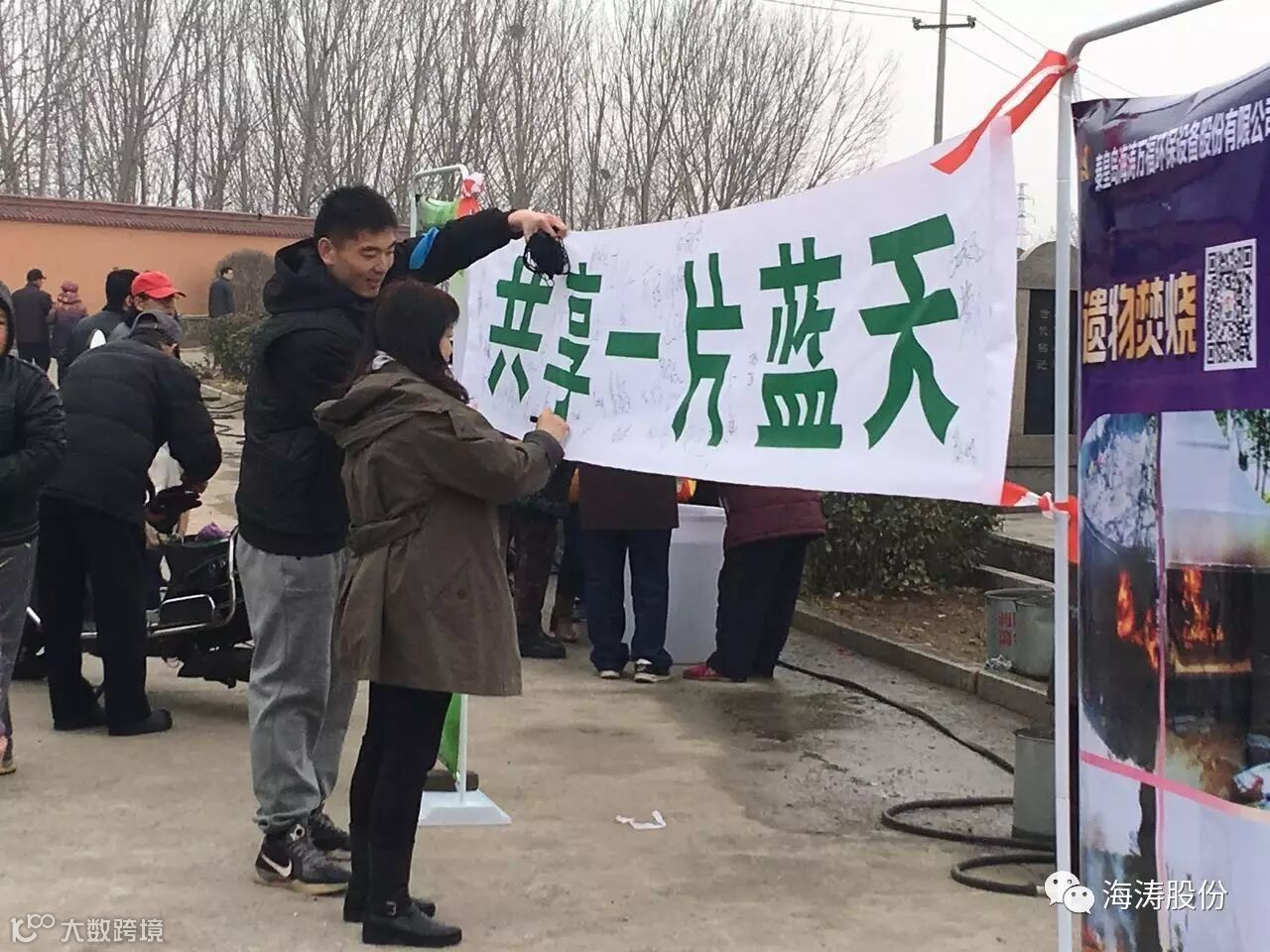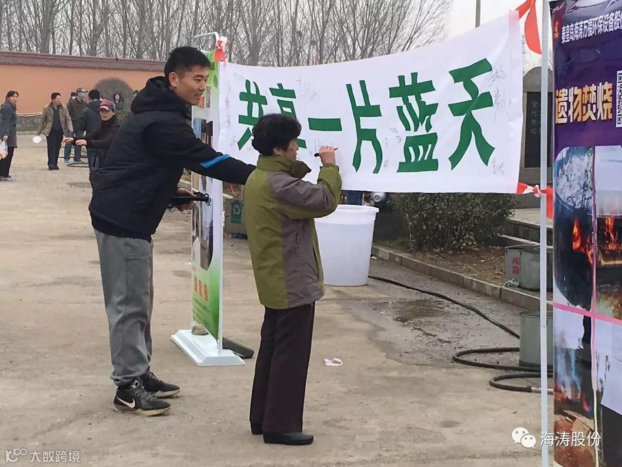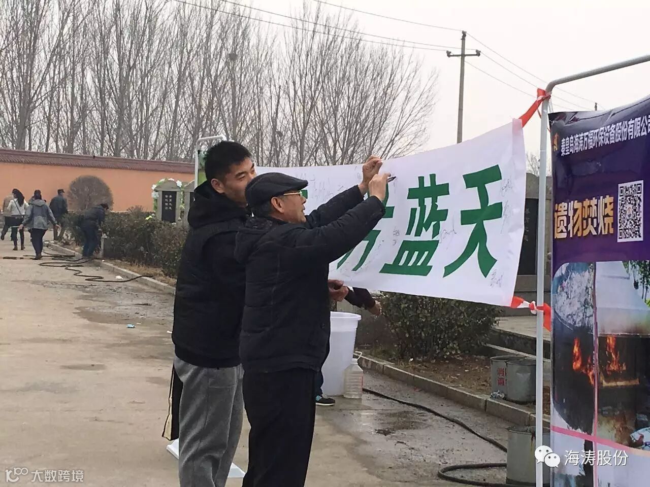 ”打造一方净土·共享一片蓝天“,是海涛人心中的梦想与追求,面对我们共同生活的大环境,这何尝不是每个人心中的梦想呢!在实地采访过程中,我们了解到,市民们对现在祭祀环境的改善甚为欢喜,当得知这些改善了殡仪馆和公墓祭祀环境的设备为秦皇岛海涛股份公司生产制造后,纷纷在条幅上留下了自己的姓名,以示对海涛公司科研创新和环保理念的支持,对此,我们深表谢意!