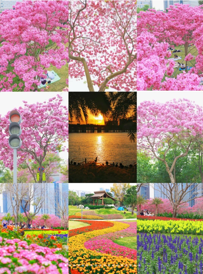 在桂湾公园的紫荆园里,434株红花紫荆(香港区花)与宫粉紫荆交相辉映,寓意着粤港澳深度合作的共同繁荣。