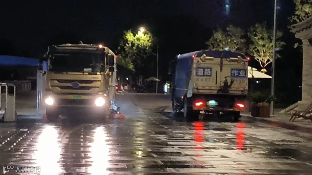 为最大限度减少对游客游览的影响,公司科学调整作业时段,将深度保洁集中在夜间22:00游客离场后至凌晨,集中力量开展全区域“深度清洁”:组织干部职工对广场砖缝、步道死角、公共设施等白天难以触及的区域进行彻底冲洗;采用高压水枪、除尘设备等专业化工具,清除油污、积尘等顽固污渍;同步清理吉市摊位残留垃圾,确保次日开市环境清爽。夜间作业期间,百人次环卫工人坚守岗位,以“月光下的坚守”换游客白天的“一眼洁净”。