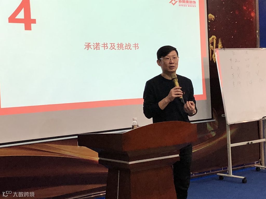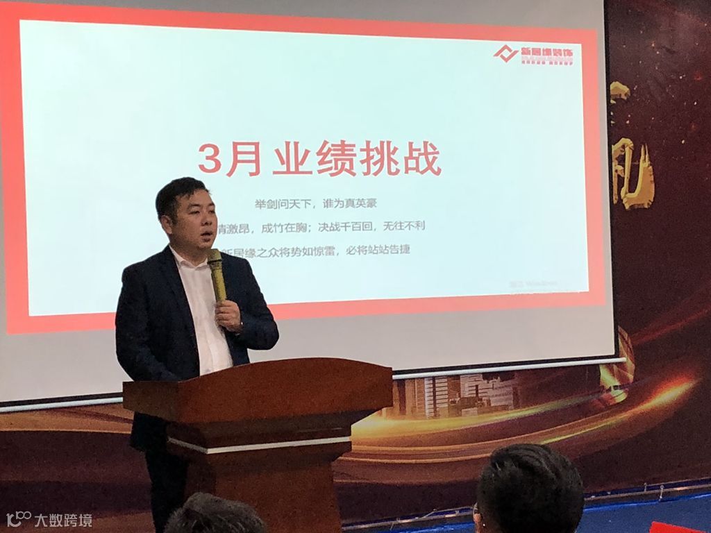 新居缘装饰副总经理龚磊基于分析企业现存问题和2019发展战略下达承诺书及挑战书,落实和分解3月份业绩目标。