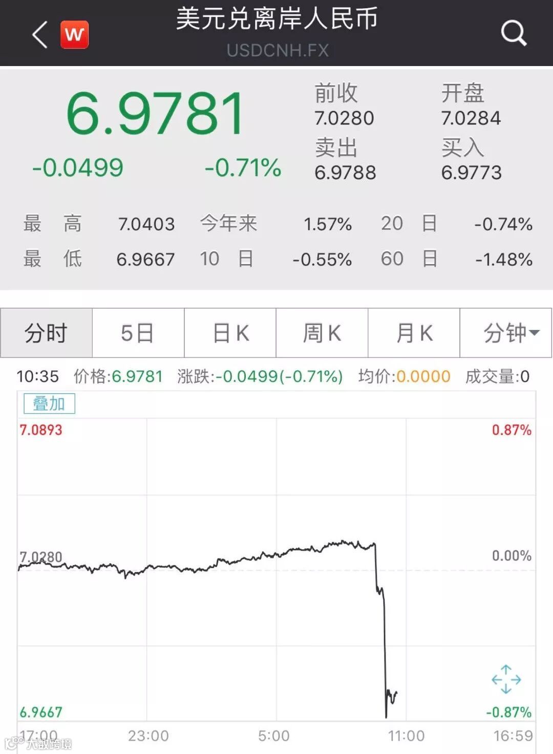 而离岸人民币汇率方面,直接收复7.0关口重回6时代,盘中一下子涨了600多点。
