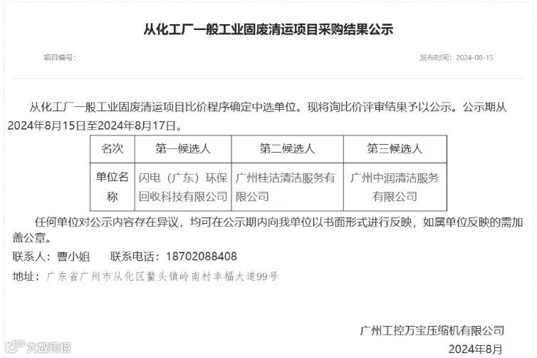 此次中标项目,是对我们闪电(广东)环保回收科技有限公司长期致力于环保回收领域专业能力的又一次见证。从化工厂一般工业固废清运项目,将由我司全面负责,我们将以高效、安全、环保的标准,完成固废的清运与处理,为构建绿色工业环境贡献力量。