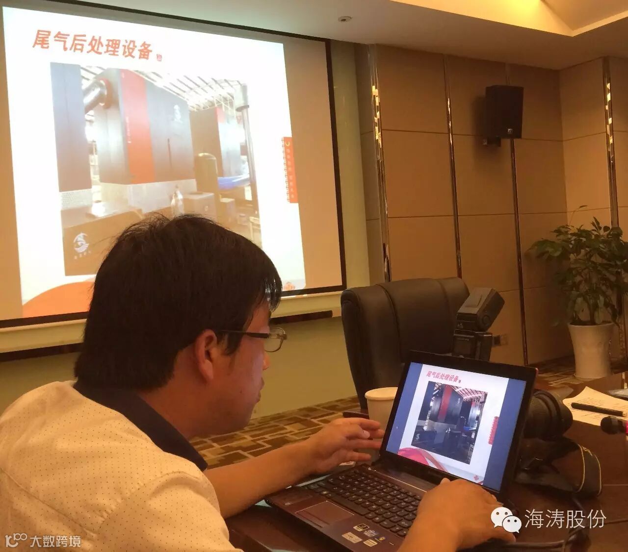 图为:秦皇岛海涛股份副总经理姜东明讲解之“第三代尾气后处理设备”