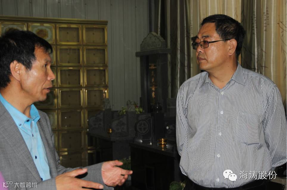中国殡葬协会李建华会长在秦皇岛市民政局牛局长、穆局长和秦皇岛市殡葬管理处杨处长的陪同下参观了公司厂区、生产车间、实验室以及展厅等部门。海涛股份公司的独创产品引起了领导们的兴趣,特别是遗物焚烧炉、十二生肖祭祀园以及室内公墓,领导们纷纷向公司董事长孙智勇询问各种产品的功能及市场前景,同时对海涛股份的创新能力做出了充分的肯定。