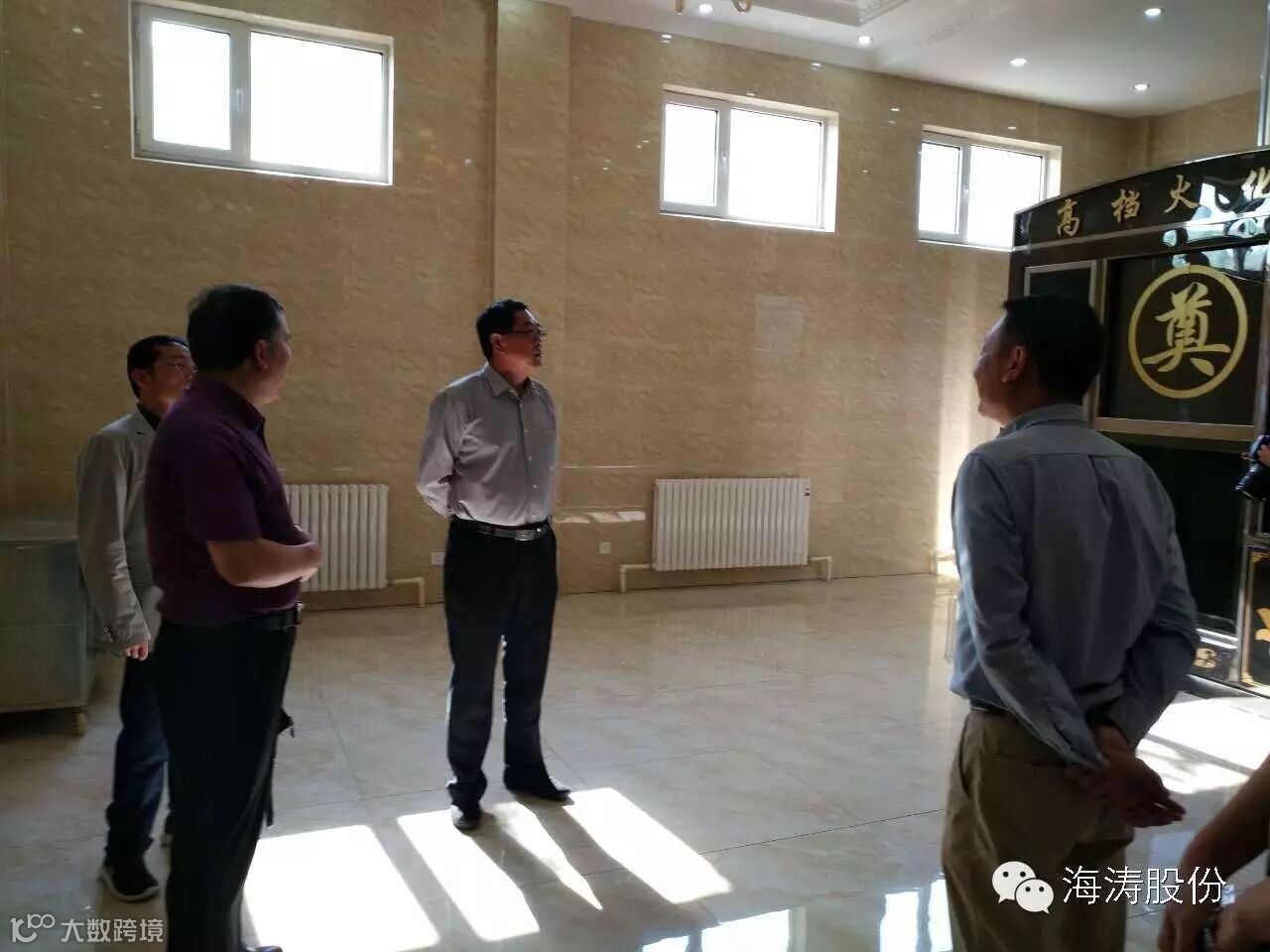 随后中国殡葬协会李建华会长在秦皇岛市民政局牛局长、穆局长和秦皇岛市殡葬管理处杨处长的陪同下,来到秦皇岛海涛万福环保设备股份有限公司进行参观考察。在参观考察期间,孙智勇董事长向领导们介绍了公司企业文化、公司产品以及公司近几年的发展情况,并详细介绍了公司近几年来的经营状况和所取得的成绩以及今后的发展路线,同时对当前市场形势下所面临的挑战作出了分析。