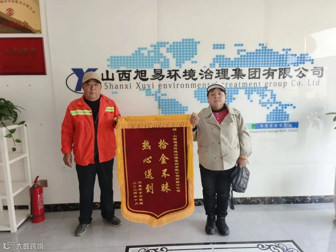 面对赵红宝的善举,失主深表感激,为了表达谢意,她特意为阳曲旭易环卫公司送来了一面锦旗,并带来了水果和环卫工人个人50元感谢费,这不仅仅是对赵红宝个人的感谢,更是对整个环卫工人群体敬业精神和良好品德的认可与赞赏。