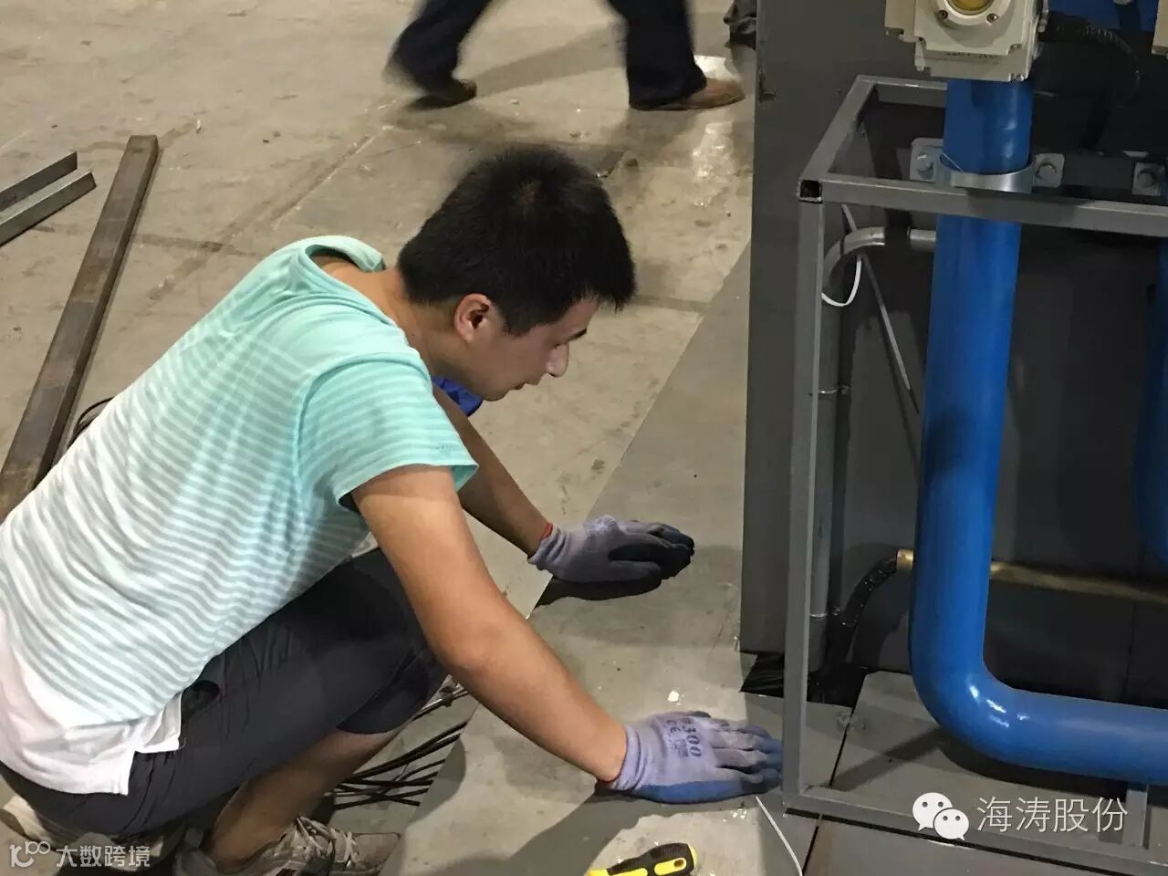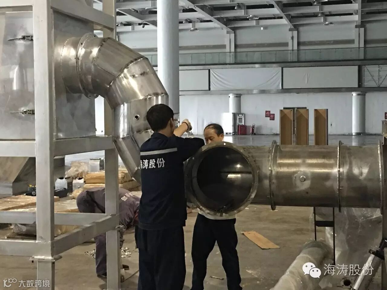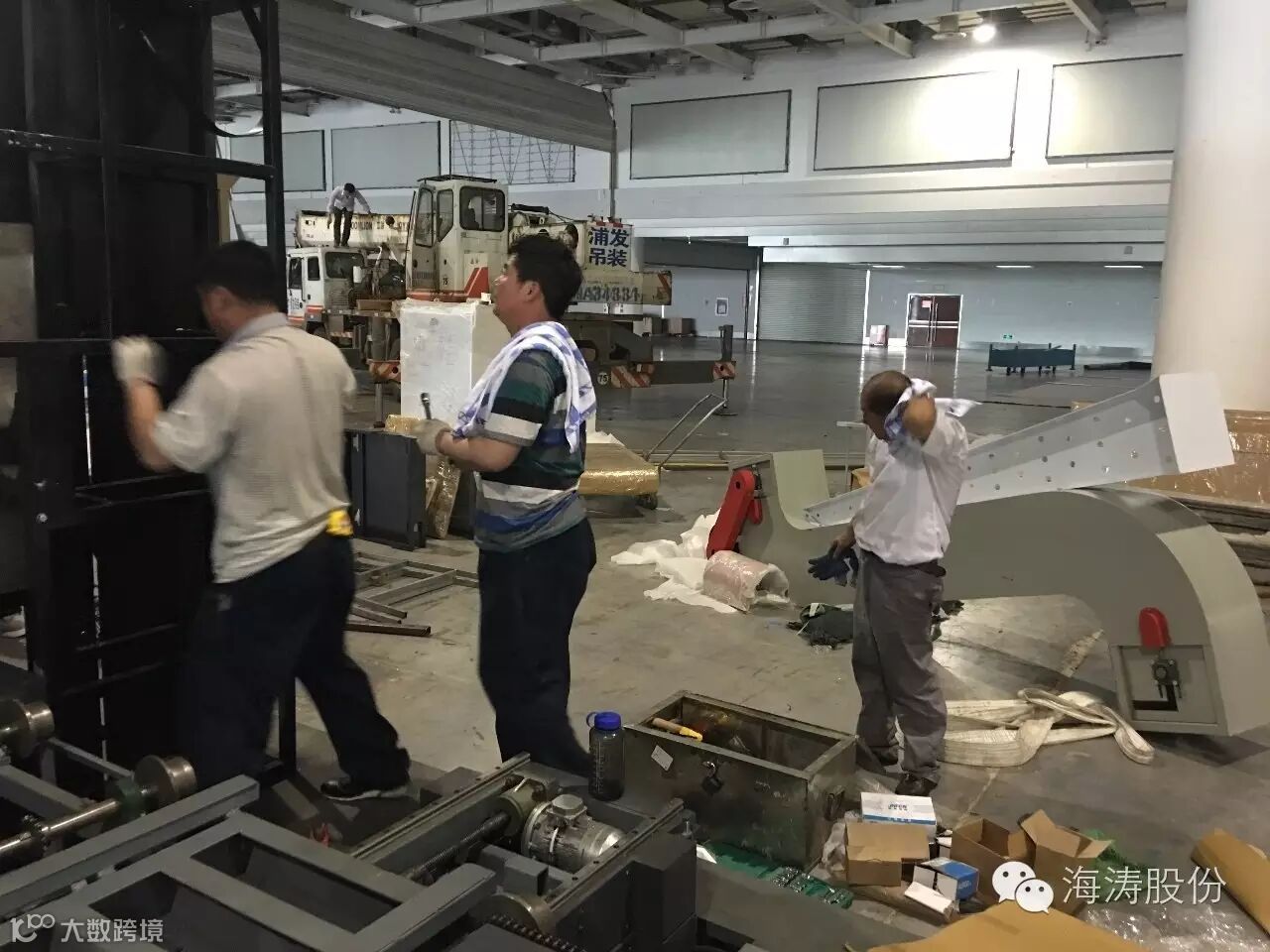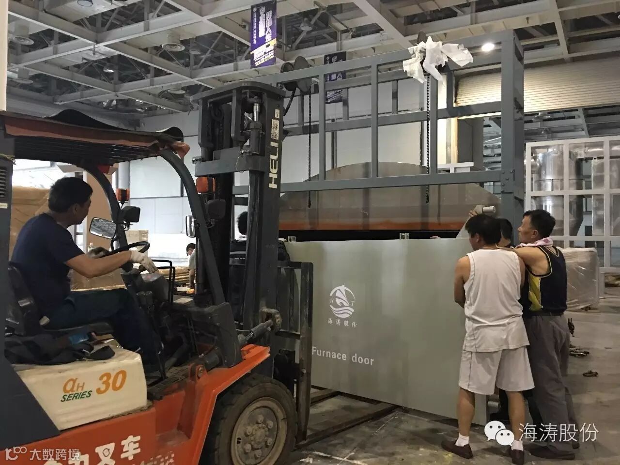 正午12:00整,我们正式步入了会展大厅,各部门分工明确,测量场地、规划部署、运送安装都在有条不紊的进行着.空旷的会场内,代表着工程进度紧张进行的声音交错不息,在这些声音中,偶尔也会听到一阵阵爽朗的笑声,这笑声夹杂着汗水,也夹杂着海涛人的热情.