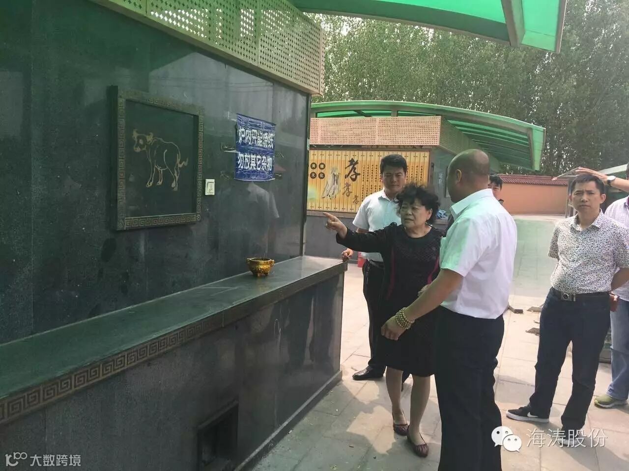 贵州省领导们一行在秦皇岛市殡葬管理处副处长张涛的引领下参观了长安陵园内各项建筑及设施。秦皇岛海涛股份的独创产品十二生肖祭祀园引起了领导们的注意,让大家眼前一亮。这是我公司所研制生产的新型环保设备十二生肖祭祀园,外观造型美观新颖,更具人性化设计。六门一组,每个门都可以任意选择生肖属相,同时伴有奏乐与自动清理祭品功能,集环保、消烟、除尘功效于一体。贵州省陈梅琳副厅长对海涛股份的环保创新理念表示高度的赞扬,并对我公司所生产的先进设备提出了好评。 张涛副处长说,自从长安陵园使用了海涛股份的创新环保设备后,在今年4月5日清明节祭祀高峰期,也未出现祭祀拥堵的现象,焚烧祭祀园中也没有了浓烟,前来祭祀的市民们也对此提出了好评。