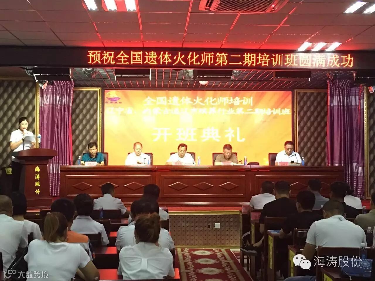 2016年7月15日,全国遗体火化师培训第二期培训开班典礼在秦皇岛海涛股份大会议室召开,参加本次典礼的有辽宁省殡葬协会副会长、丹东市殡仪服务中心主任周海森、内蒙古通辽市殡葬协会会长马春海、中国环球殡葬报主编鲍元、秦皇岛海涛股份董事长孙智勇、秦皇岛海涛股份培训中心主任苏维君、典礼主持人宋继敏、全体行政人员、任课讲师和学员们。