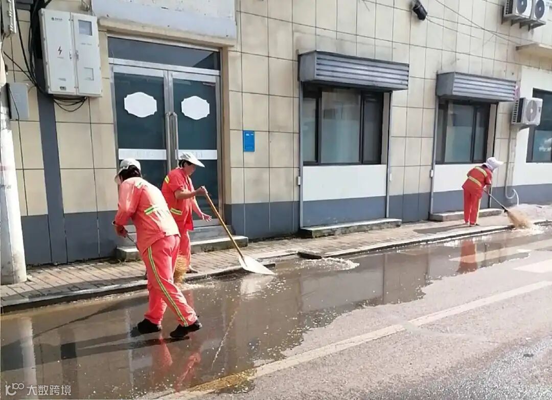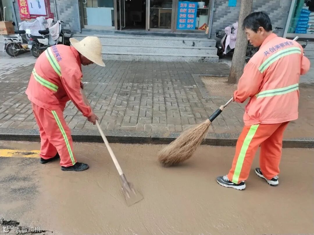 大雨可能导致泥沙淤积,尤其是工地周边或老旧街区。环卫工人要用铁锹铲除淤泥,再用水车冲洗路面,工作量比平时更大。