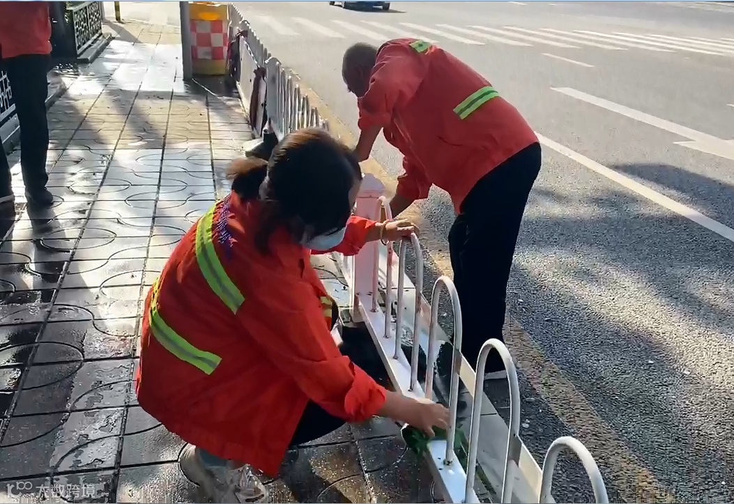 公交站台、垃圾桶、护栏等公共设施在雨后容易沾满泥水,环卫工人会仔细冲洗和擦拭,让城市细节也保持清爽。